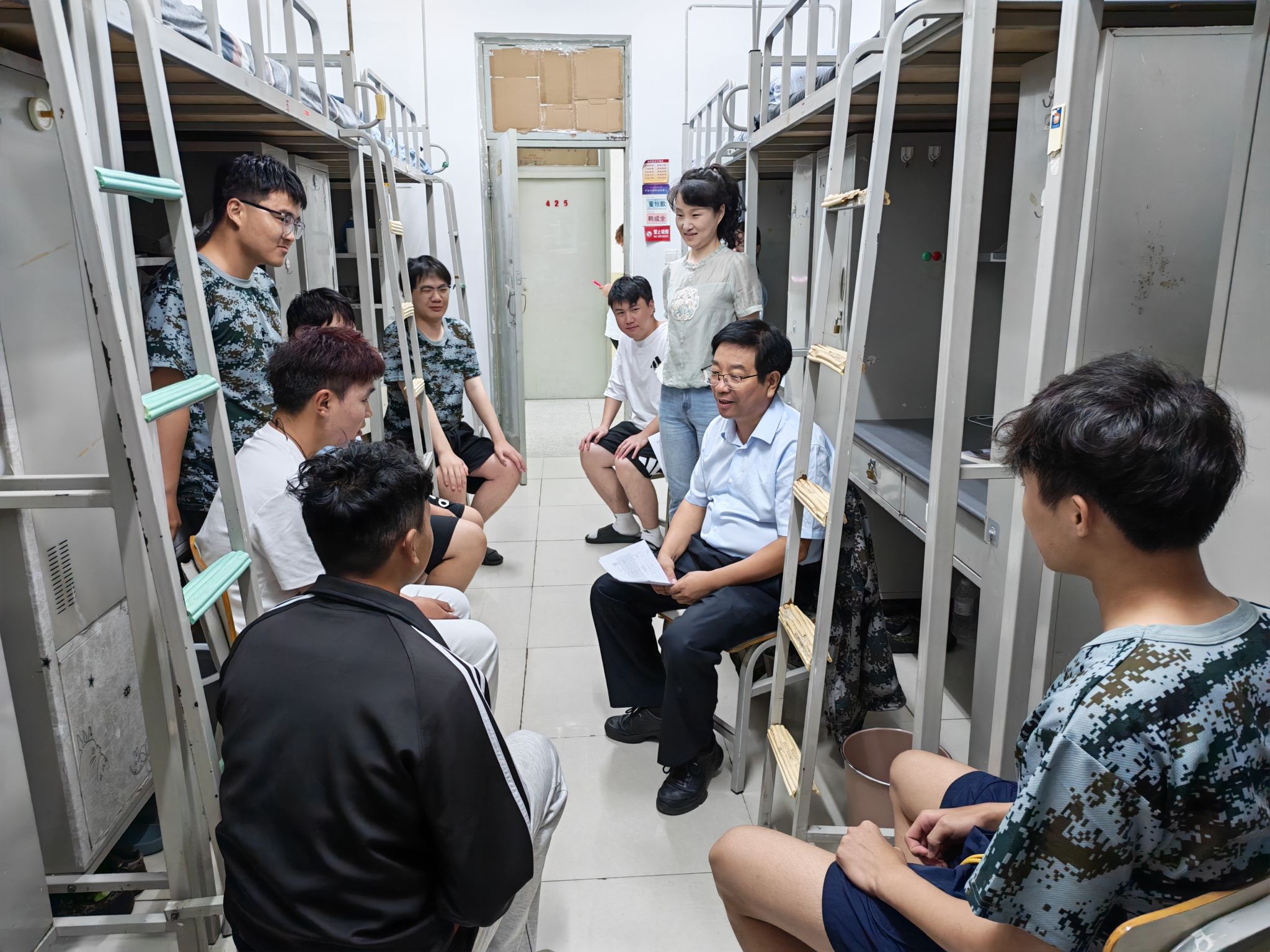 秋风送爽迎新生,温情关怀暖人心。为切实了解2025级新生入学后的住宿生活与适应情况,传递学校对新生的重视与关怀,9月13日晚,校党委常委、副校长蔡玉俊在学院党委书记刘晶、副书记郭丽芳及新生辅导员闫丹、董牧歌的陪同下,深入2025级新生宿舍走访慰问。